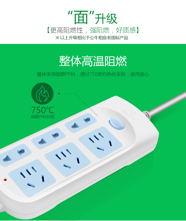 公牛GN-609(新国标)电源插线板 3M袋 (新老国标混发,老国标产品售完即止)